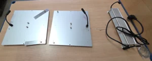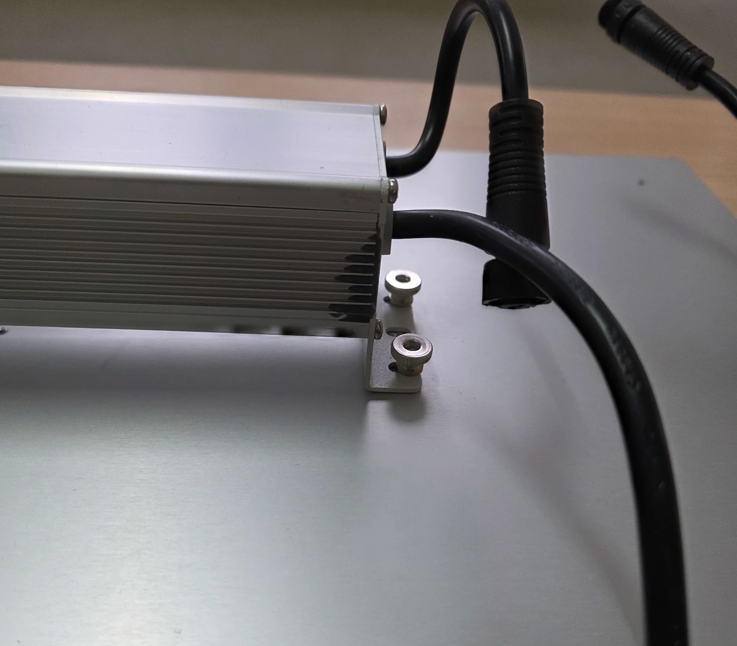 Der Treiber kann links eingeschoben werden, rechts über die Schrauben setzen. Muttern aufsetzen und alle vier festdrehen.