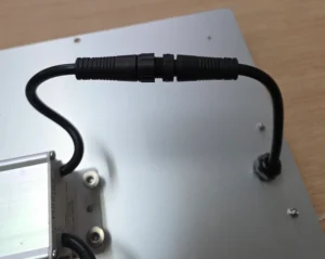 Kabel zusammen stecken (sind verpolungssicher). Mutter am Kabelstecker festsdrehen.