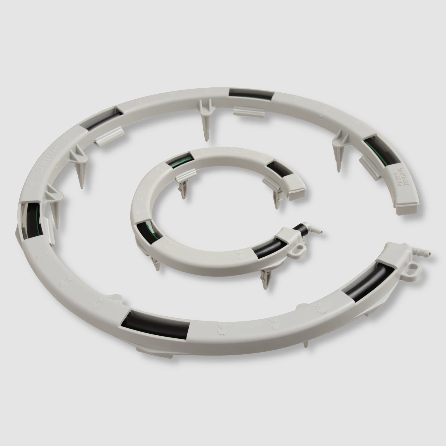 Da das in den Ringen verbaute MINIDRIP Tropfrohr als Druckregler fungiert, konnten wir feststellen, dass 18 mal 125er oder 250er iCircle problemlos an einer Tauchpumpe RP800 zu betreiben sind. Und das bei einem Niveauunterschied von 100 cm (Pumpe – iCircle).